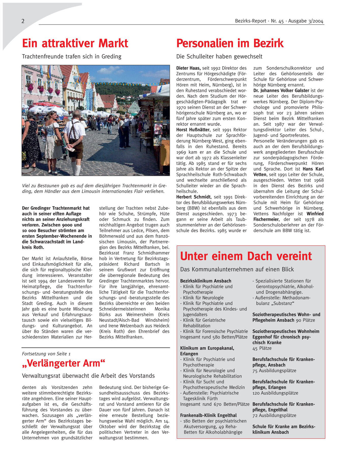 Heute zählen die Bezirkskliniken Mittelfranken zu den größten Gesundheitsunternehmen in der Region. Der Klinikverbund hat neue Richtungen eingeschlagen. Neue Standorte wie Weißenburg, Neustadt an der Aisch, Feuchtwangen, Höchstadt an der Aisch, Roth, Fürth und Treuchtlingen kamen hinzu.