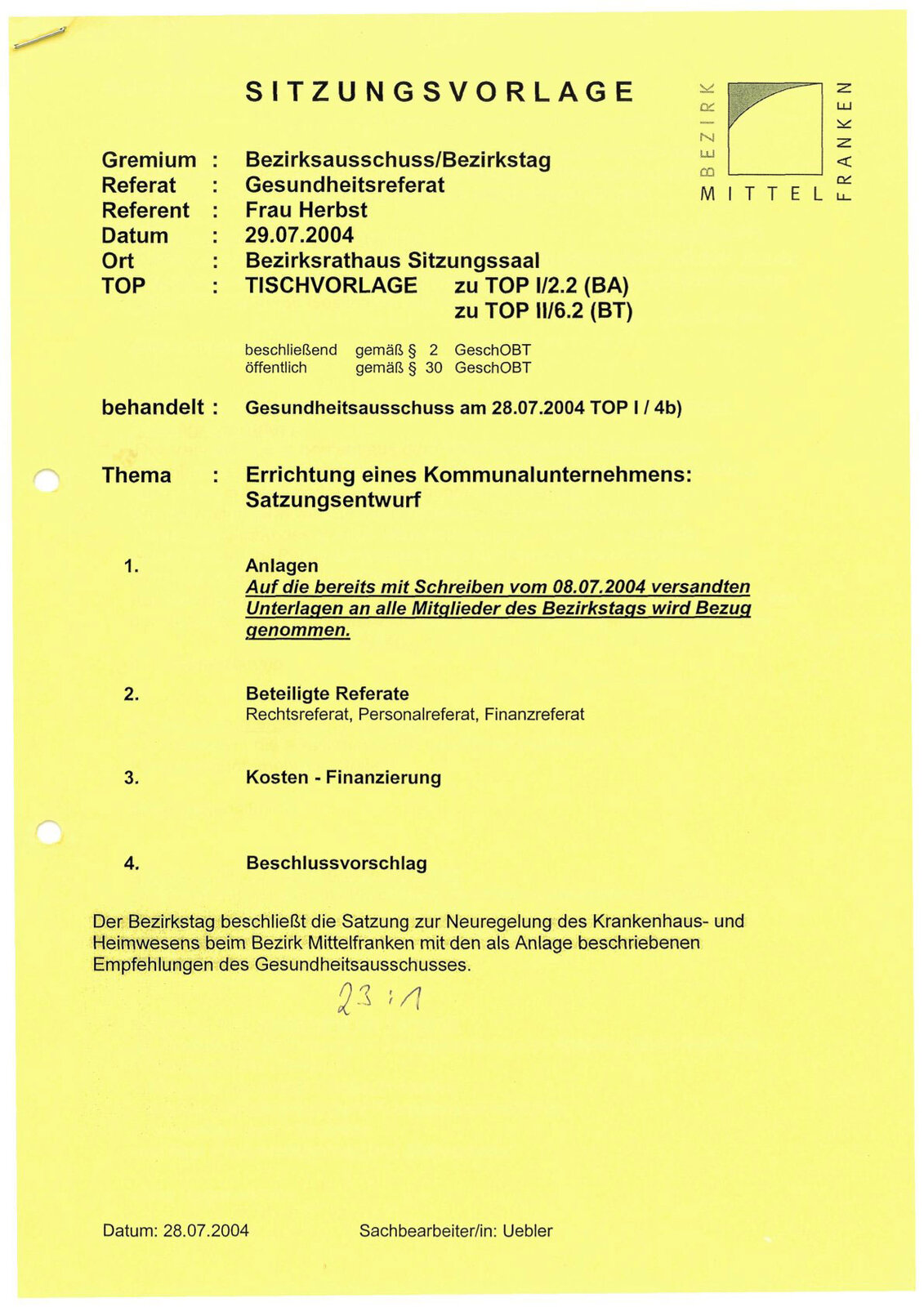 Die erfolgreiche Entwicklung des Klinikverbunds bestätigt, wie weitsichtig die damalige Entscheidung war. Vorbereitet wurde diese bereits im Jahr 2004. Am 28. Juli 2004 beschloss der Bezirkstag Mittelfranken die Einrichtung des Kommunalunternehmens. Der damalige Bezirkstagspräsident Richard Bartsch bezeichnete die Entscheidung später im Bezirks- Report, dem heutigen Bezirks-Journal, als „einschneidendsten Beschluss in der 50-jährigen Geschichte des Bezirks Mittelfranken“. Für ihn sei Mittelfranken mit diesem Beschluss zum Vorreiter unter den bayerischen Bezirken geworden.